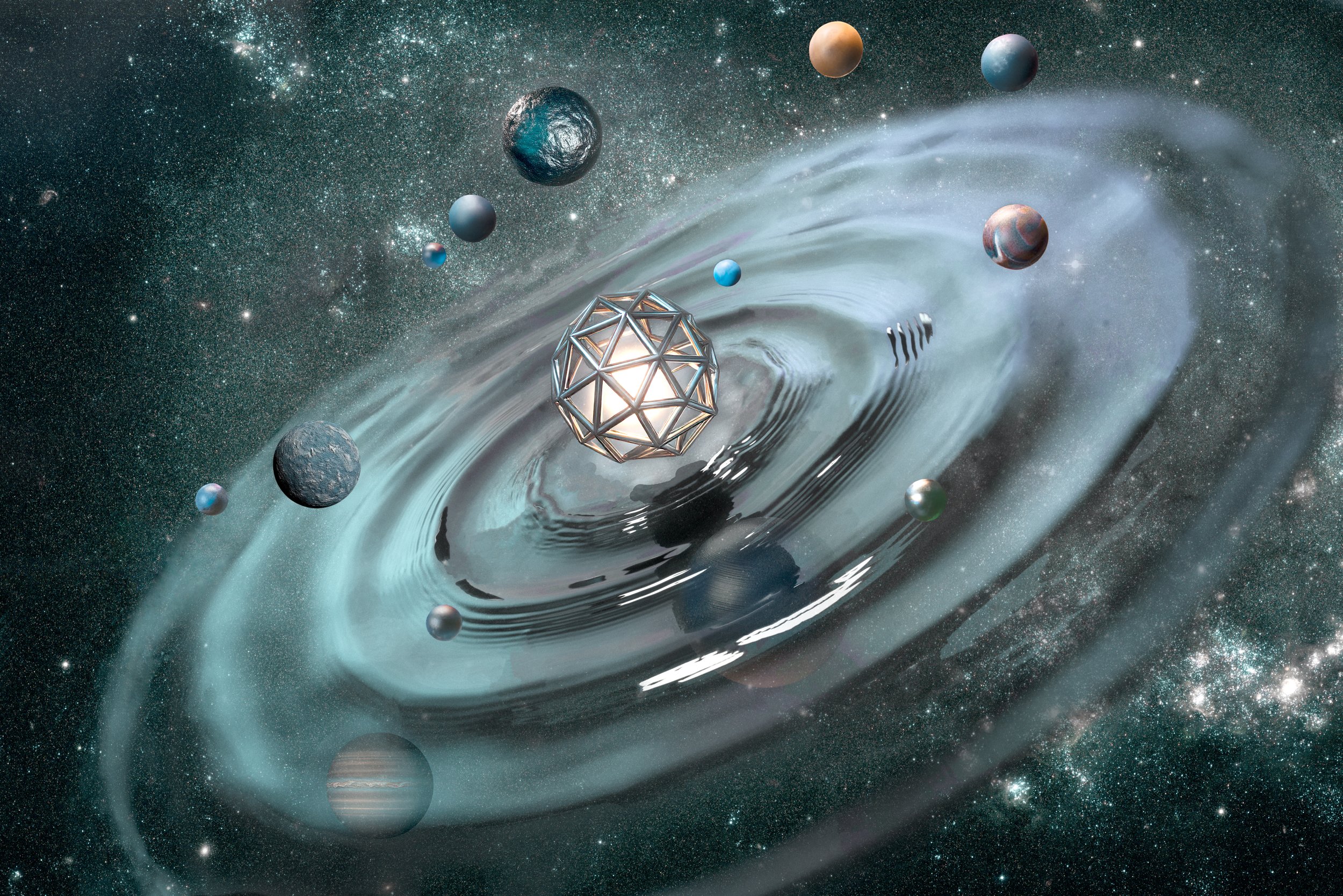Imagine jewelry pieces that explore the profound concepts of balance and unbalance, intertwined with the dynamic forces of movement and gravity. The central theme revolves around the abstract depiction of celestial bodies in orbit within a vast, undefined cosmos.